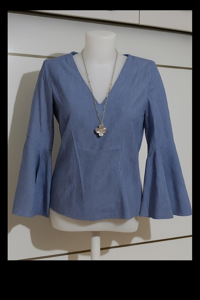 Mavi denim kumaştan, V yakalı, düğmeli ve uzun kollu kadın gömleği. Rahat kesimiyle günlük kullanıma uygundur. Sorunu yok. M ve l beden uyumlu son fiyat