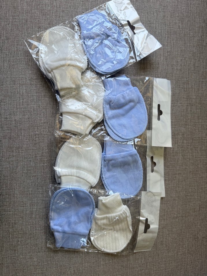 Mavi ve Beyaz Erkek Bebek Eldivenleri Velcro