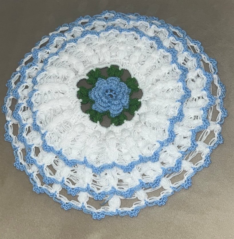 Mavi ve Beyaz Örgü Çiçekli lif