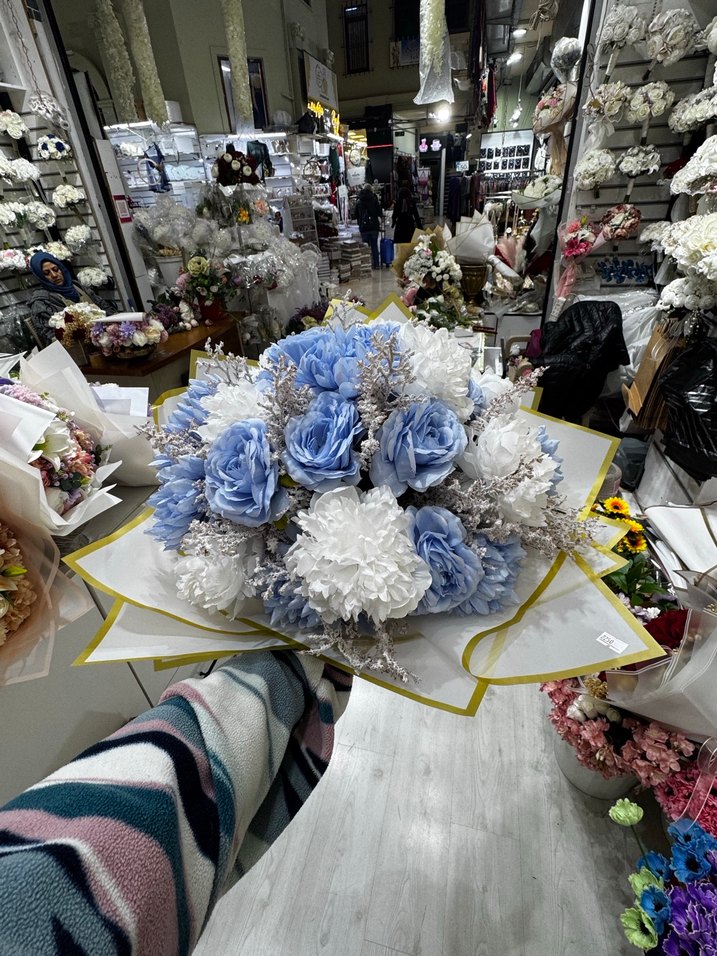 Mavi ve Beyaz Yapay Çiçek Buketi