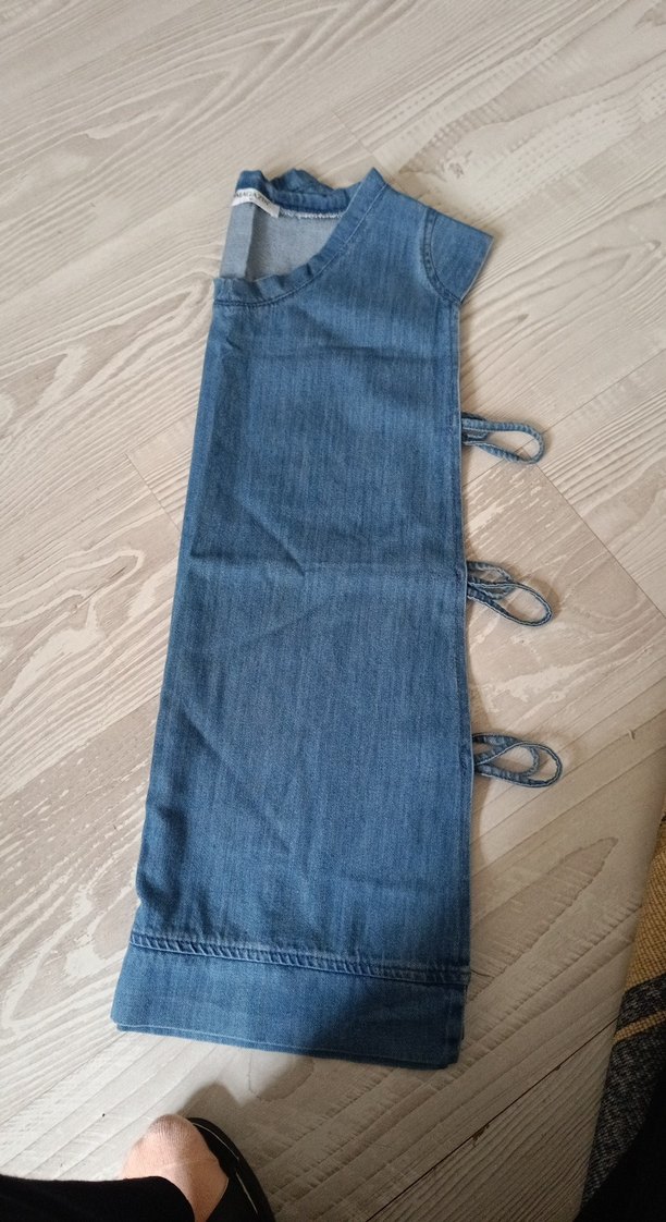 Ayarlanabilir halkalara sahip, yumuşak ve dayanıklı kumaştan mavi ve gri bebek taşıma askısı. Hem bebek hem ebeveyn için rahat.