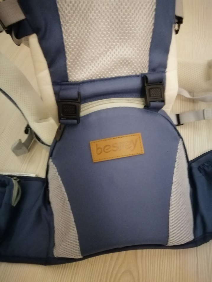 Mavi ve gri yumuşak kumaşlı, ayarlanabilir kayışlı ve nefes alabilen file panelli bebek taşıyıcı. Güvenli kullanım sağlar. Ben çok rahat kullandım. Beli desteklemesi çok güzel yurtdışından geldi.