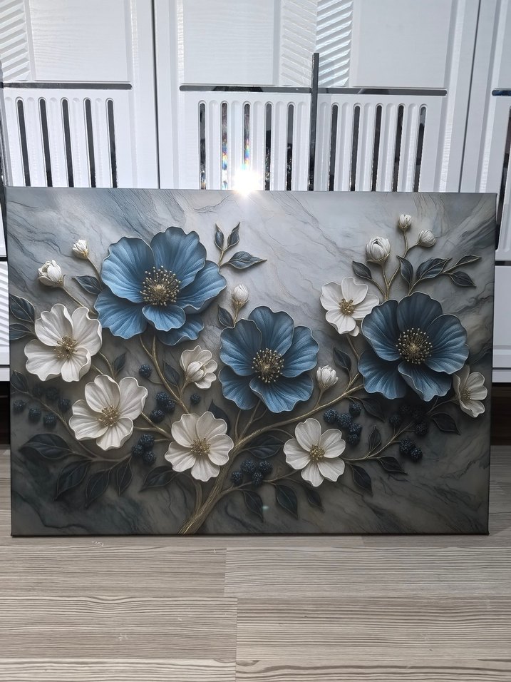 Mavi ve Gri Çiçekli Dekoratif Tablo