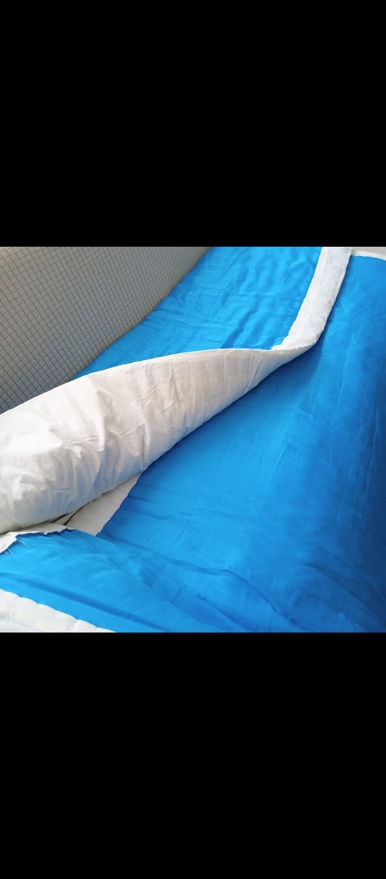 Çift taraflı yatak örtüsü, pürüzsüz mavi ve yumuşak gri yüzeyiyle konfor sağlar. ️
