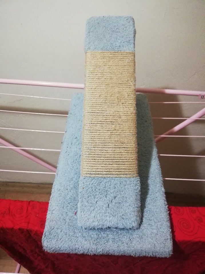 Yumuşak mavi taban ve gri tırmalama yüzeyi olan kedi tırmalama tahtası, kedinizin tırmalaması için dayanıklı ve konforlu bir alan sağlar.
