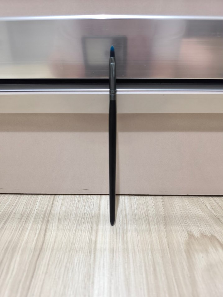 Mavi uçlu ve gri metal kısmı olan siyah saplı makyaj fırçası, hassas uygulama sağlar. ️