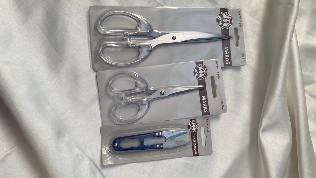 Gri ve mavi renklerde, şeffaf saplı manikür makas seti. Mavi makas katlanabilir ve tırnak kesimi için uygundur. Üzerinde 'MAKAS' yazılı. ✂️