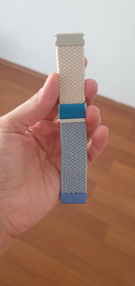 Mavi ve gri tonlarda örgü desenli erkek saat kayışı, minimalist ve streetwear tarzı sunar. Rahat kullanım için uygun malzemelere sahiptir. ⌚