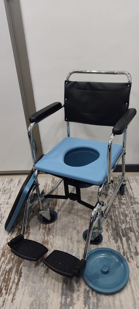 Mavi ve Gri Tekerlekli Hasta ve banyo sandalyesi