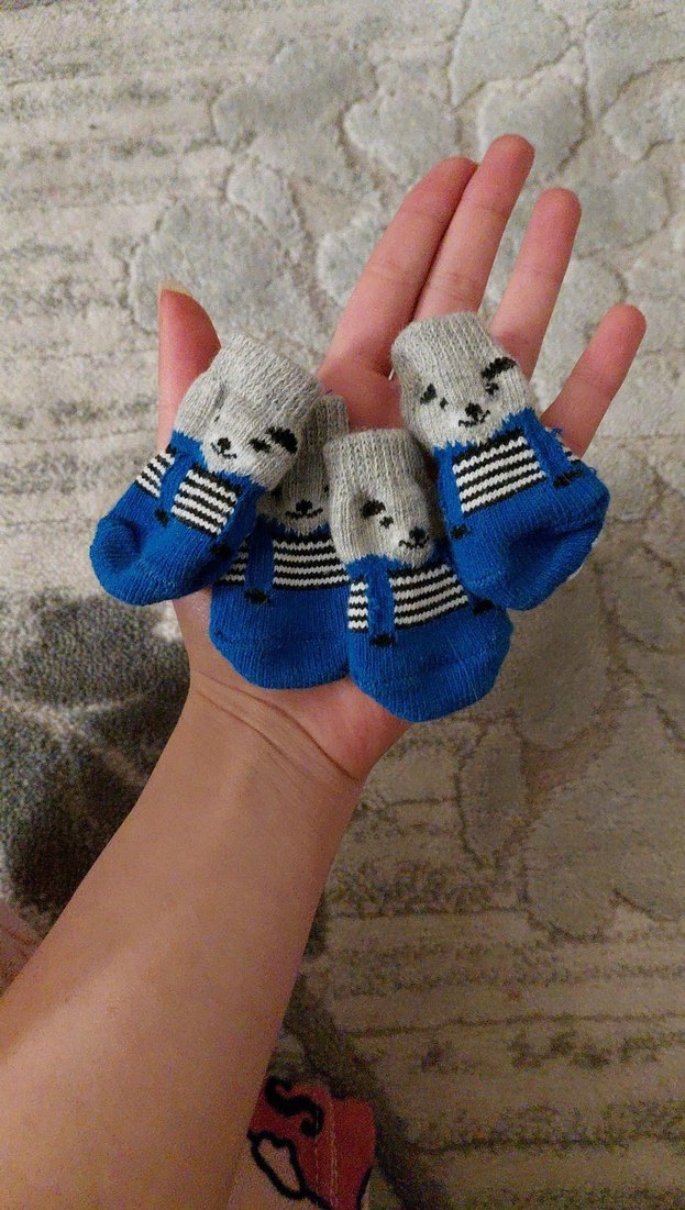 Mavi ve gri renklerde, sevimli ayıcık yüz detaylı, yumuşak dokulu yavru kedi çorabı