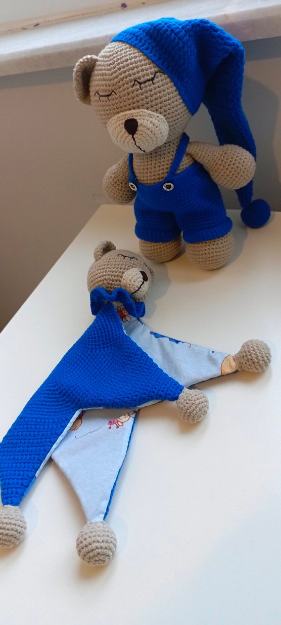 Örme detaylar. uyku arkadaşı ve ayıcık oyuncak.