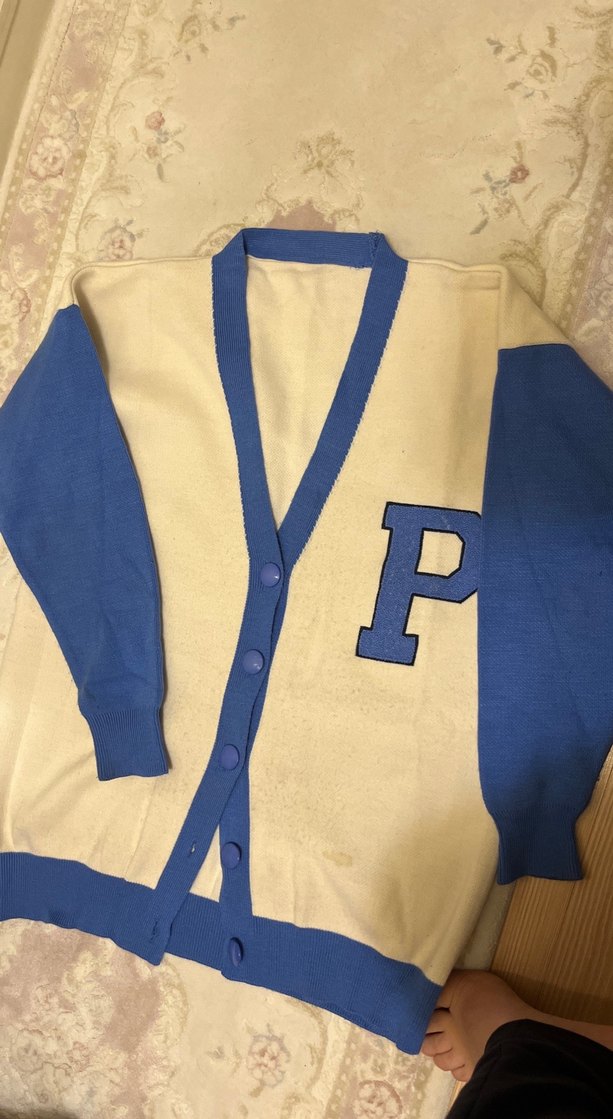 Pastel mavi ve krem renklerde, düğmeli, notched lapel yakalı, uzun kollu, triko hırka. Önünde büyük 'P' harfi detaylı, yumuşak ve sıcak tutan fleece kumaştan yapılmıştır.
