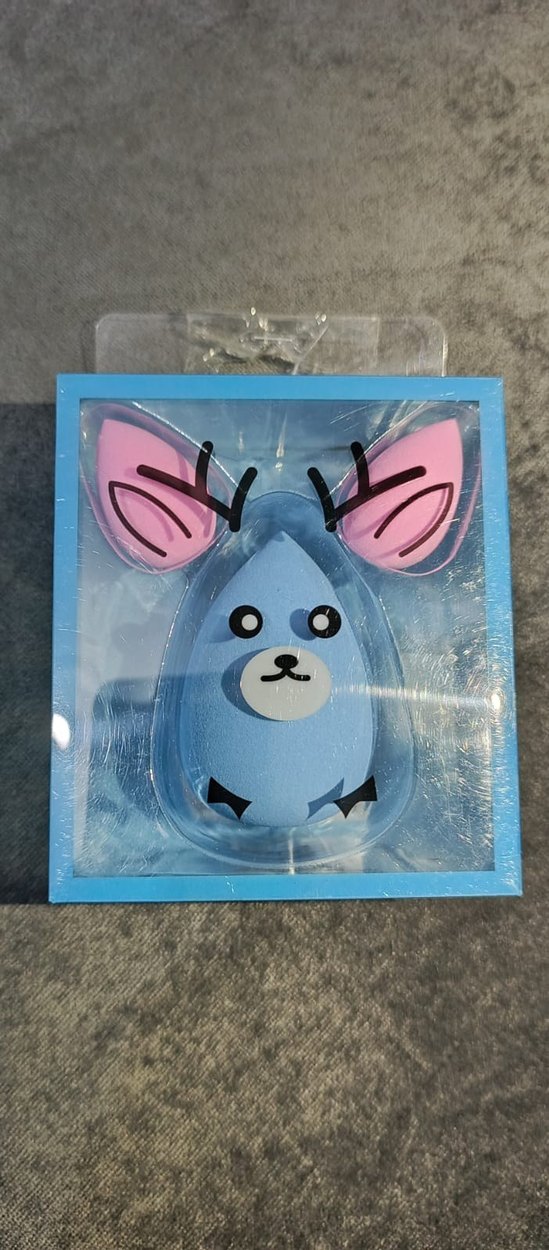 Pembe kulaklı, sevimli hayvan yüzü şeklinde pastel mavi be pudra makyaj süngeri, pürüzsüz makyaj için uygun.