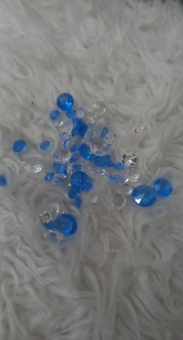 Farklı boyutlarda renkli mavi ve şeffaf tırnak süslemeleri, yaratıcı tasarımlar için uygundur.