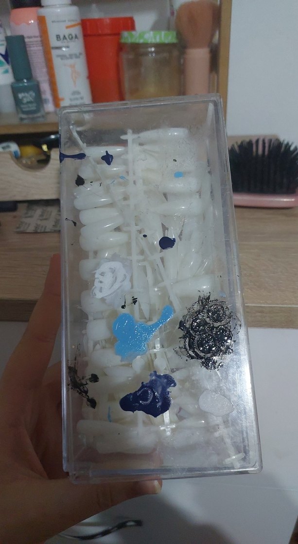 Mavi ve siyah çiçek desenli beyaz tırnak süsleri, kolay uygulama için tasarlanmıştır. Canlı ve hafif renklerle tırnak sanatınızı zenginleştirin.