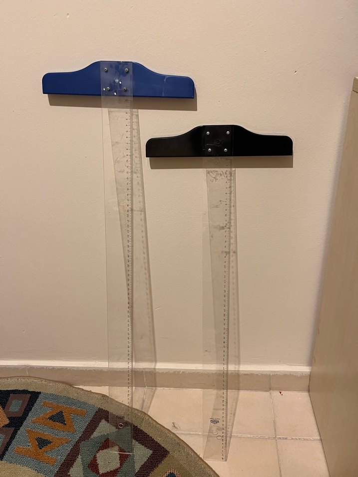 Koyu mavi ve siyah saplı, üzerinde net ölçü birimleri olan iki şeffaf ölçek. Siyah t cetveli 65 cm Mavi t cetveli 75 cm. Toplam fiyattır