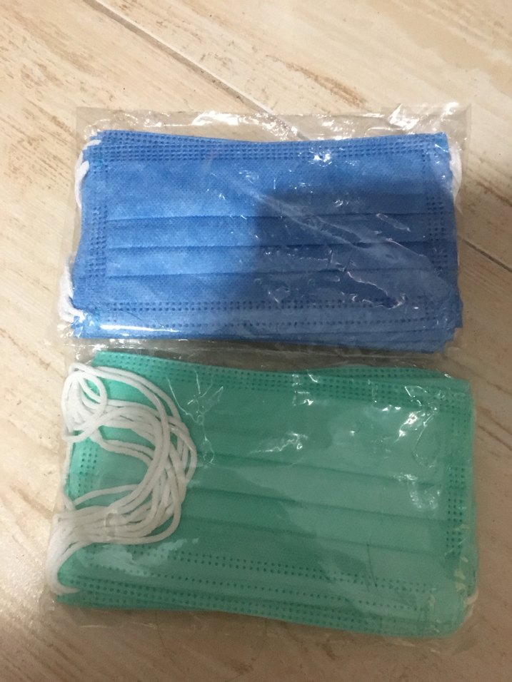 Mavi ve yeşil renklerde, kulak ipli tek kullanımlık yüz maskeleri, ağız ve burun kapatma için uygundur. Her pakette 20 adet var