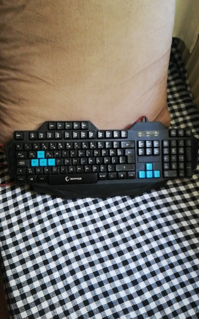 Mavi vurgulu tuşlara sahip koyu renkli kablolu tam düzen klavye. Verimli yazma ve oyun için uygundur. ⌨️