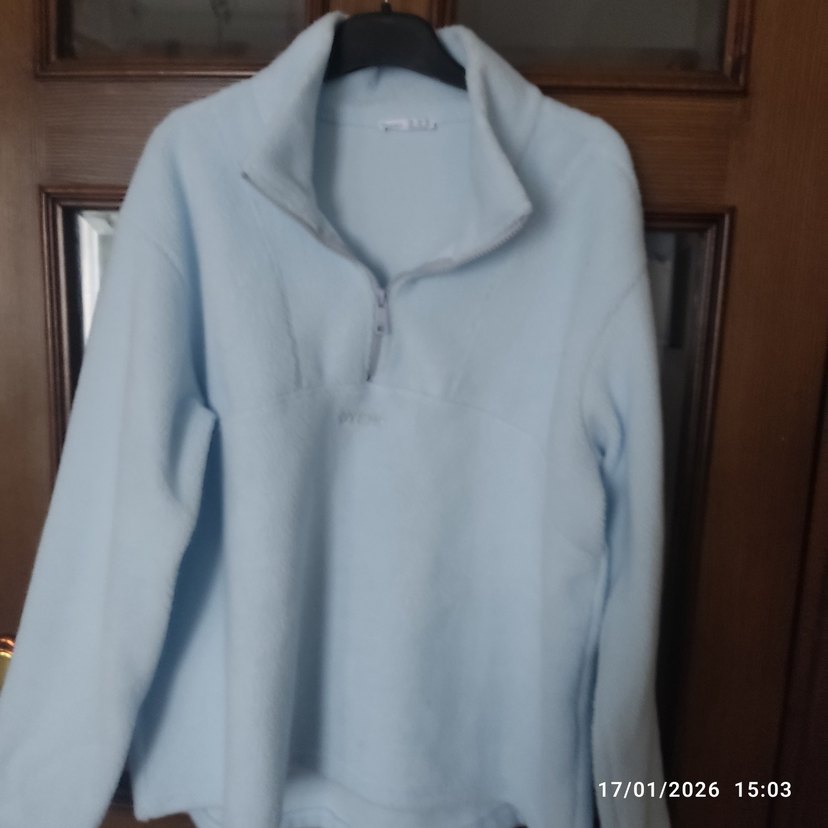 Yarım fermuarlı, uzun kollu erkek polar sweatshirt. Gevşek kesim ve pastel mavi renkte, rahat ve yumuşak dokulu. Günlük kullanıma uygun, sokak stiline uyumlu.