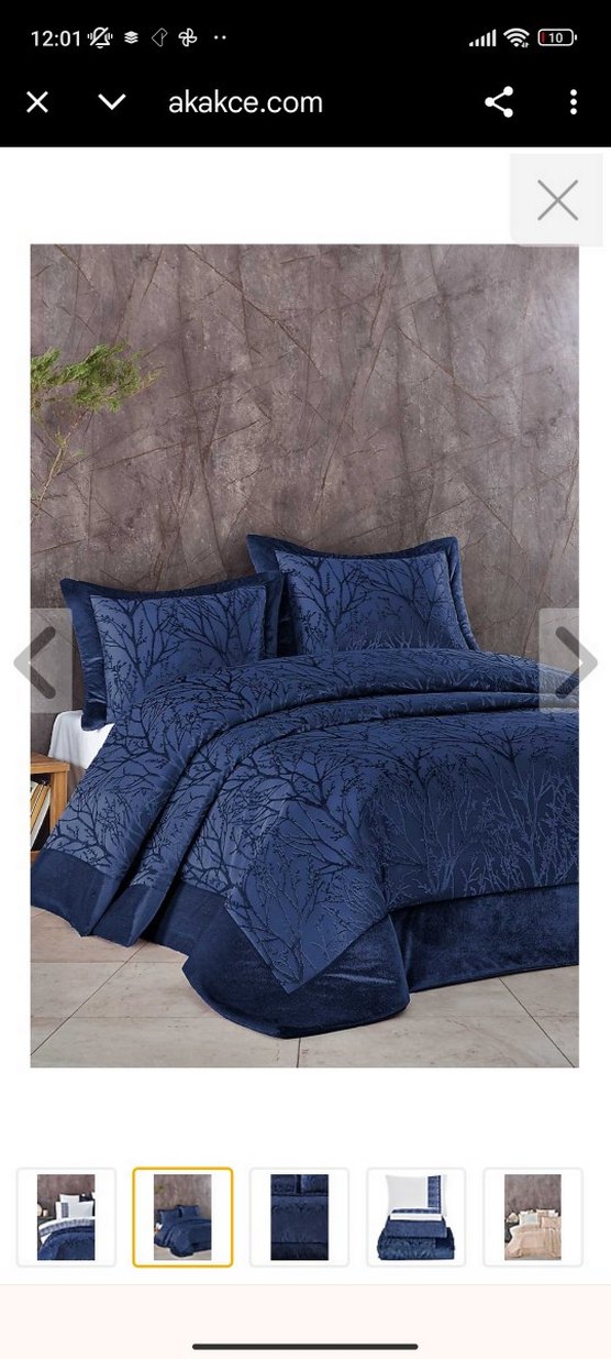 Mavi renkte, nakışlı desenli yatak örtüsü Yumuşak ve konforlu kumaşıyla yatak odasına şıklık katar çeyizim için almıştım odam küçük olduğu için sayılı kullanabildim bir sorunu yok elart marka