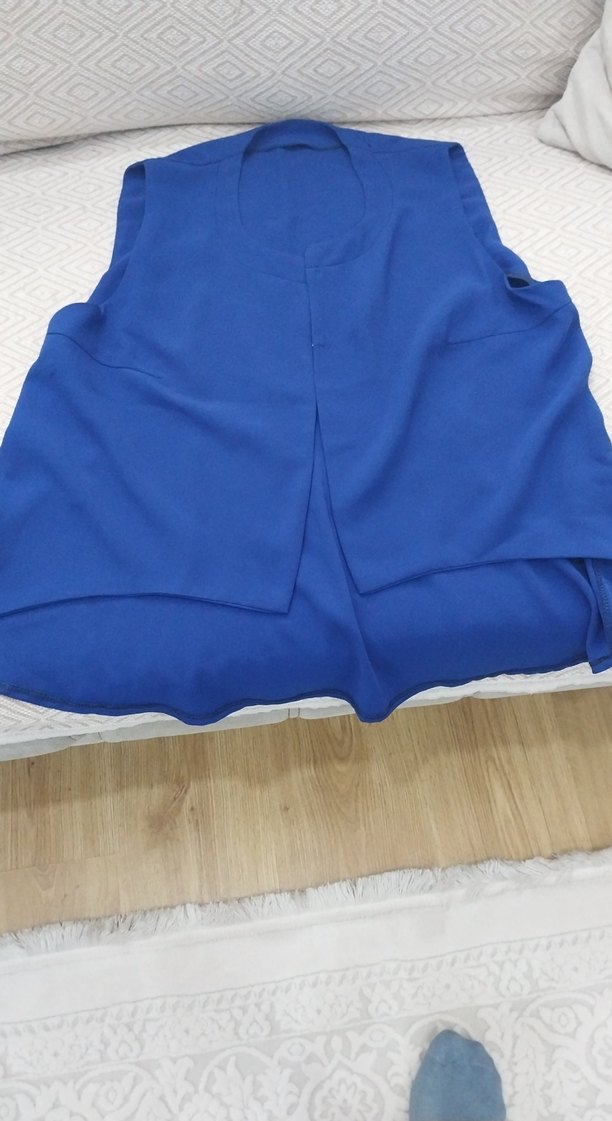 Parlak mavi renkte, yelek etek takım bol kesim özel dikim büyük beden tasarıma sahiptir. şık özel gün kullanıma uygundur. dökümlü şık