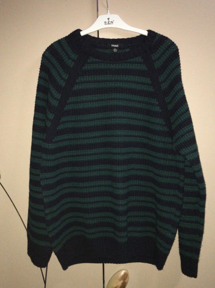 MAVİ Yeşil Çizgili Erkek Triko Kazak