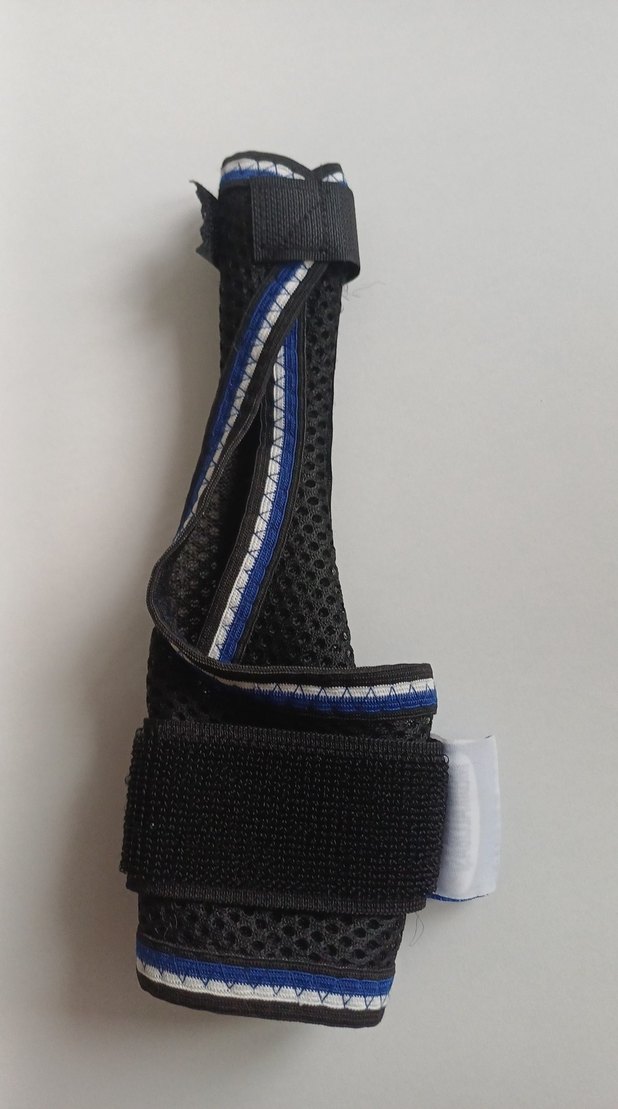Koyu mavi bas parmak sabitleme aparati ortapedi urunu alindi ama kullanilmadi