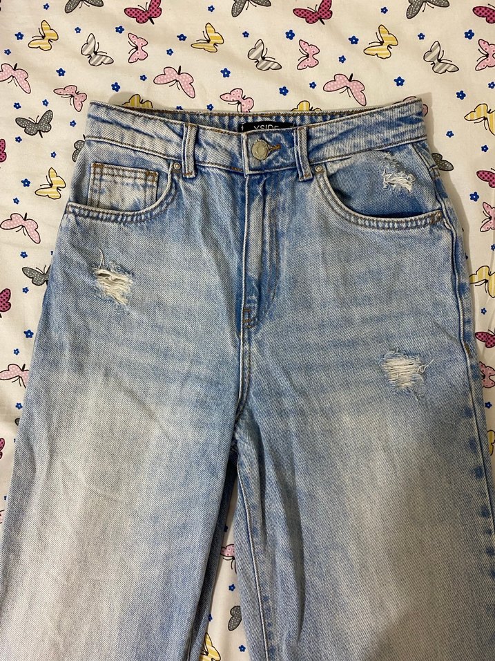 Mavi Yırtık Detaylı Bol Kesim Kadın Kot Pantolon