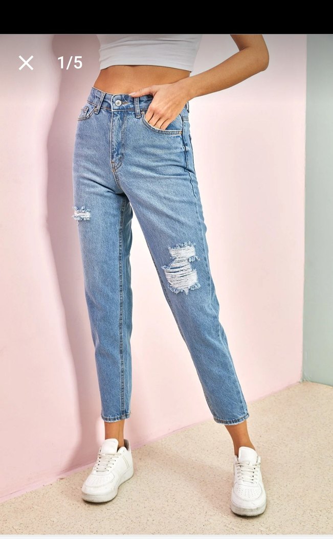 Mavi Yırtık Detaylı Denim Pantolon