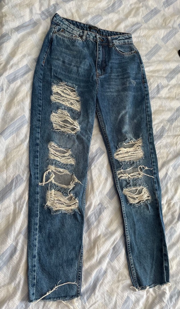Mavi yırtık detaylı yüksek bel mom jean