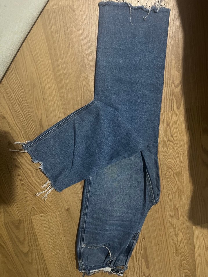 mavi tonlarda, yırtmaç detaylı salaş midi kot pantolon. Günlük rahat kullanıma uygun, sokak stiline uyum sağlar. ✨