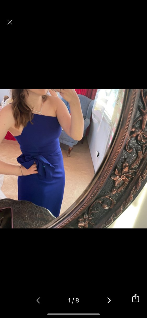 Mavi, tek askılı kollu, vücuda oturan yırtmaçlı abiye elbise. Fiyonk detayı ve çağdaş minimalist tarzıyla romantik akşamlar için uygun. 38 beden bir defa kullanıldı herhangi defosu yoktur