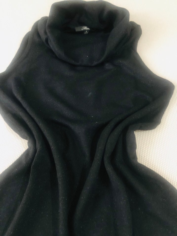Siyah, yüksek yakalı uzun kesim, kolsuz Yumuşak, sıcak dokusu dış mekan kullanımı için uygundur. Mavinin çok az kullanıldı temize siyah üstünde simli dokusu