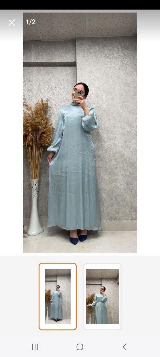 Mavi, yüksek yakalı ve uzun kollu bu uzun elbise, ipeksi kumaştan drapeli ve salaş kesimlidir. Minimalist ve sade tarzda, günlük kullanıma uygundur.