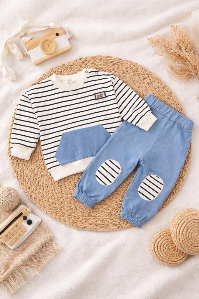 Mavi Zebra Desenli Erkek Bebek Takım