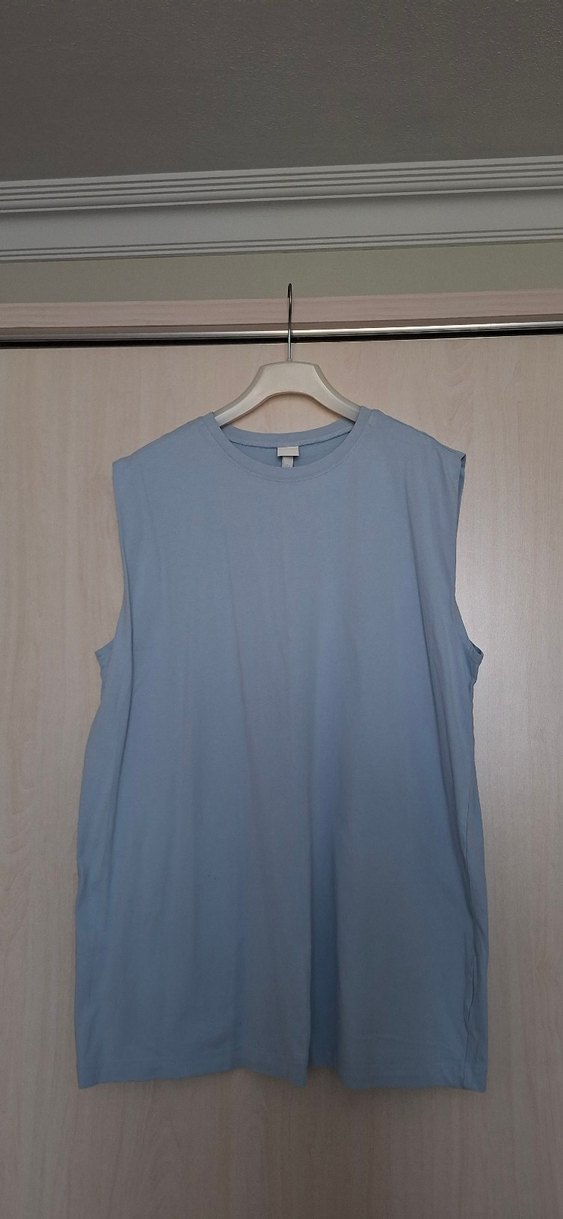 Mavi penye kumaştan, kolsuz ve yuvarlak yaka, salaş kesim midi elbise. Minimalist ve rahat şıklık sunar.