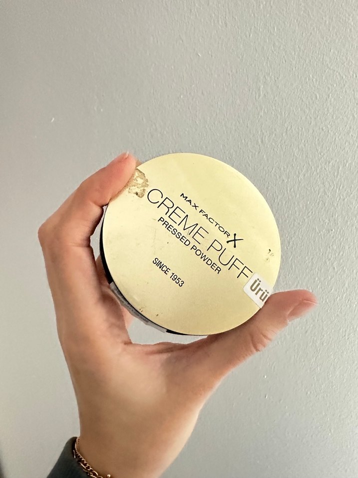 Max Factor parlak bej renkte preslenmiş pudra, pürüzsüz bir bitiş sunar. Bana koyu geldi