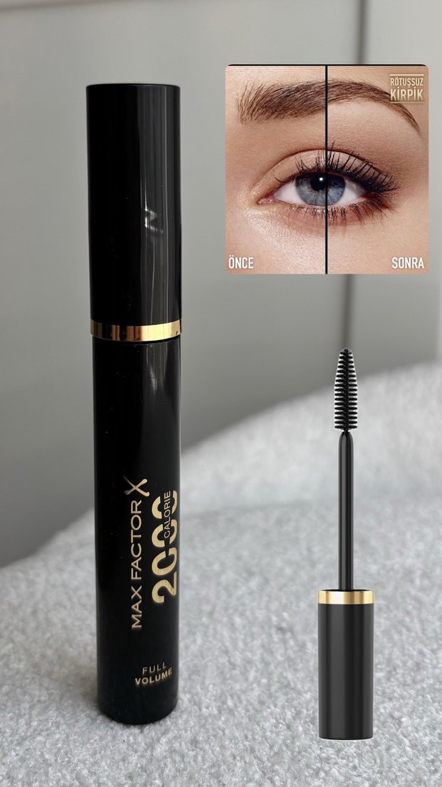 Max Factor siyah renkli full volume maskara, kirpiklere yoğun koyu renk ve hacim kazandırır.