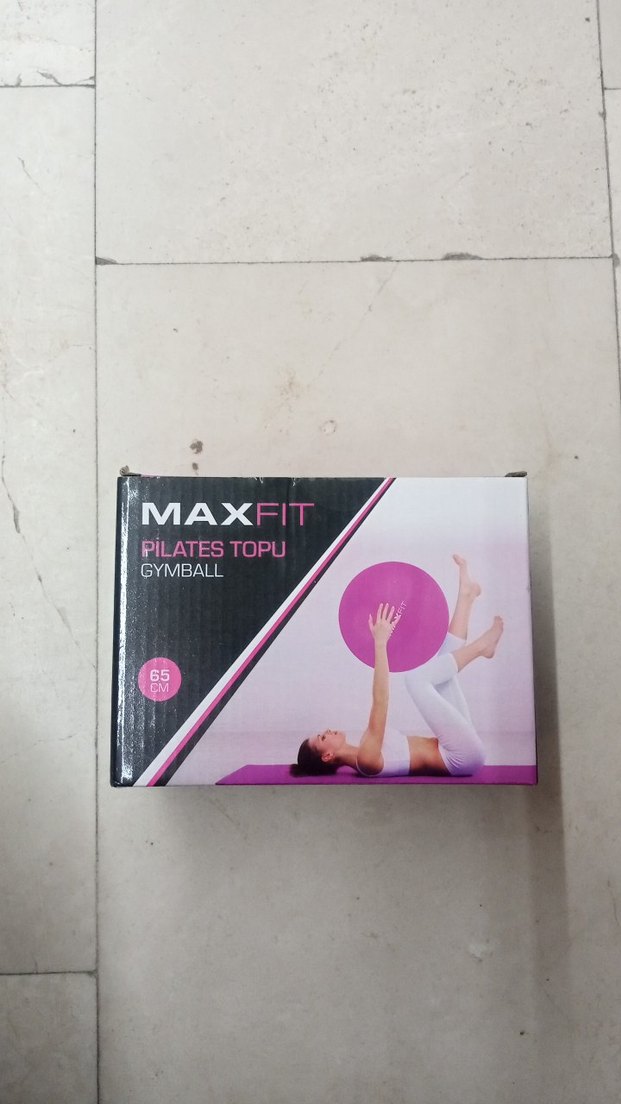 MaxFit marka, 65 cm çapında, baskılı desenli pembe Pilates topu. Egzersizler için uygundur, orijinal kutusunda. ♀️
