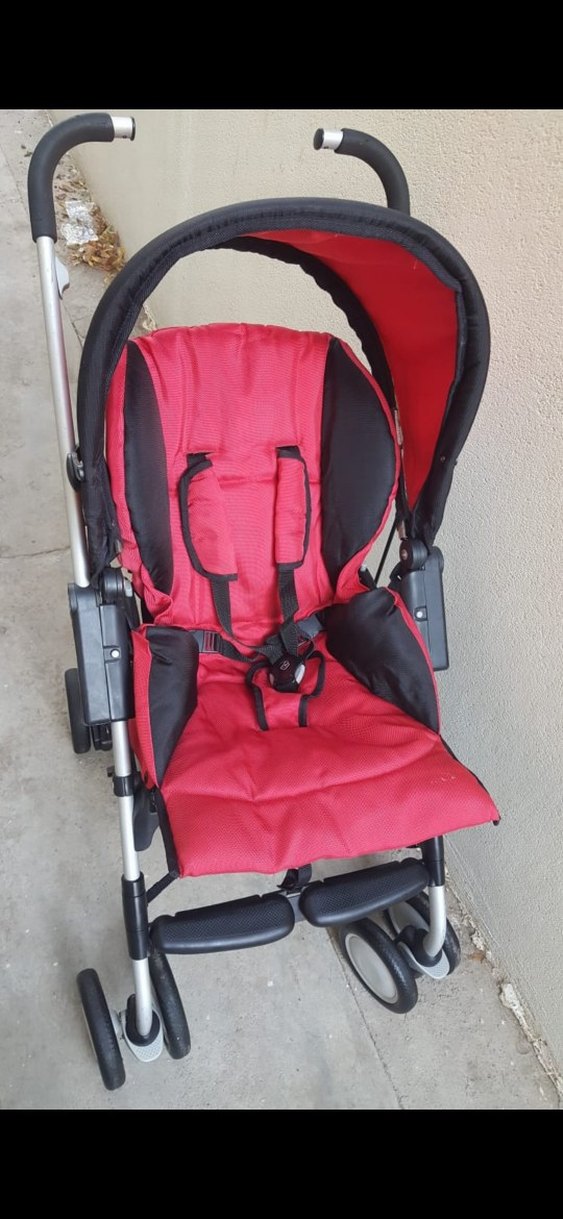 Koyu kırmızı renkte, emniyet kemerli ve gölgelikli bebek arabası. Hafif metal iskelet ve ön tekerlekleriyle kolay kullanım sağlar. MAXİ COSİ TEMİZ YENİ AYARINDA DEFORMESİ YOKSOLMAYOK.