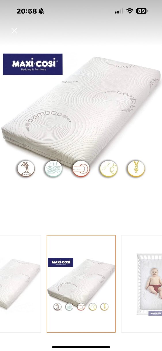Maxi-Cosi markalı, hafif desenli beyaz sentetik kumaştan bebek yatağıdır. Nefes alabilir ve yumuşak malzemeye sahiptir. ️