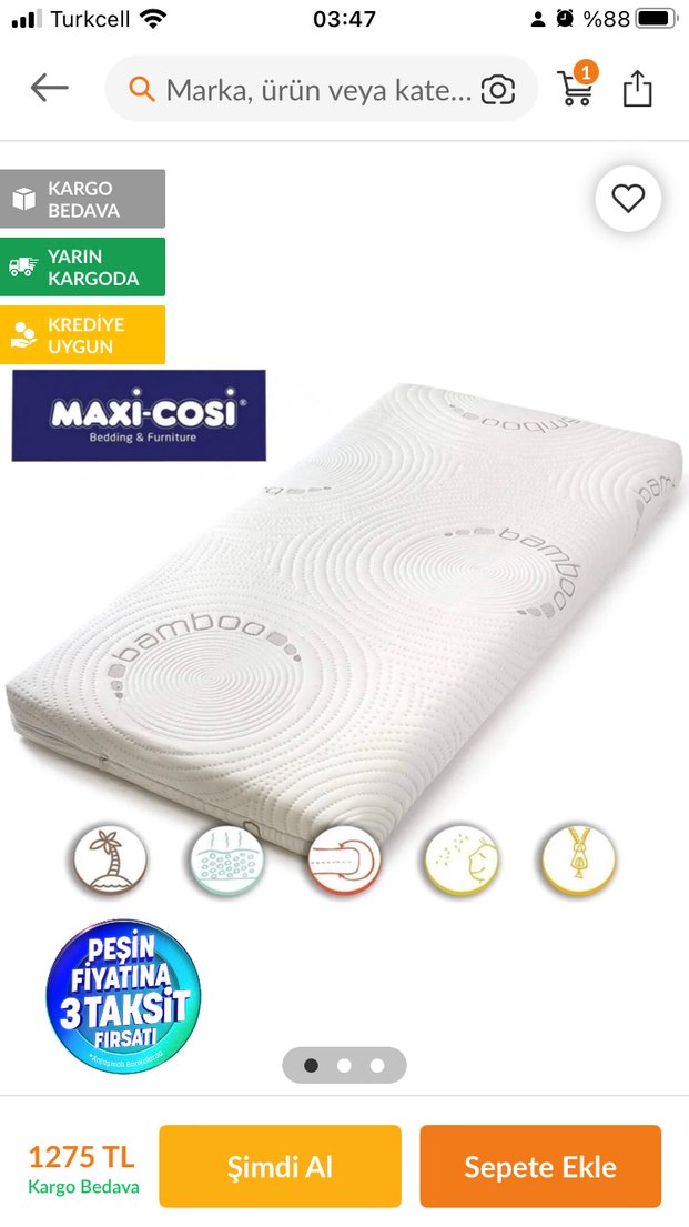 Maxi-Cosi beyaz bebek yatağı, yumuşak sentetik kumaştan üretilmiştir. Düz, desensiz yüzeyi ile konforlu destek sağlar. Kolay temizlenir. ️1 sene kullanıldı