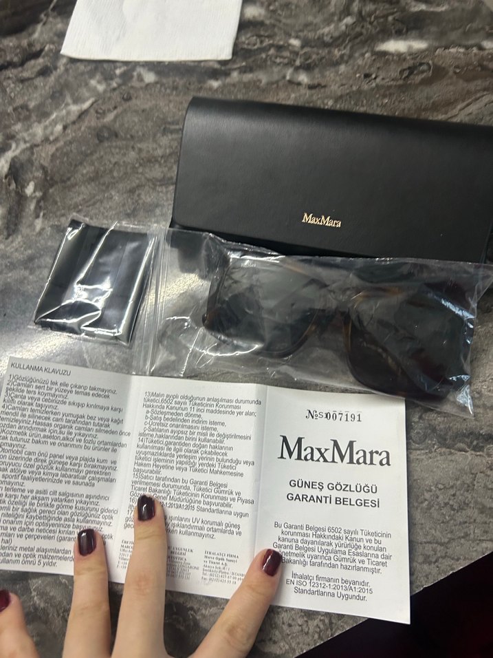 MaxMara parlak altın renkli kadın güneş gözlüğü, koyu camlı ve normcore tarzında. Garanti belgesi ve özel kutu ile birlikte. ️sıfır