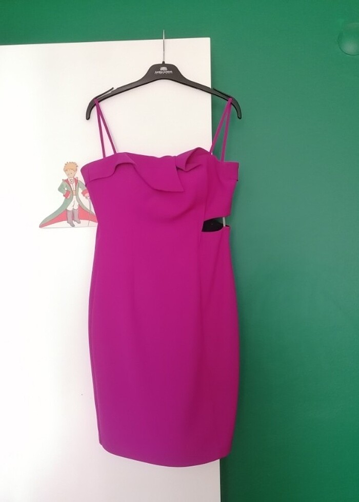 Muhteşem fuşya rengi bir elbise. Çok severek giydim sonra tekrar başka yerde farklı model olarak giyerim diye eteğini kestirdim dizime geliyor (1.62boy) fakat o haliyle hiç giymedim. kesilen kısmı da duruyor onu da gönderebilirim etek yaptırılabilir. göğüs detayı çok güzel ben askılarını içine sokup öyle kullandım fakat askılı da çok güzel. tüm detaylar fotolarda var. kuru temizlemeye göndermedim sanırım hatırlamıyorum belki kuru temizlemeye verebilirsiniz. hiçbir kusuru yok
