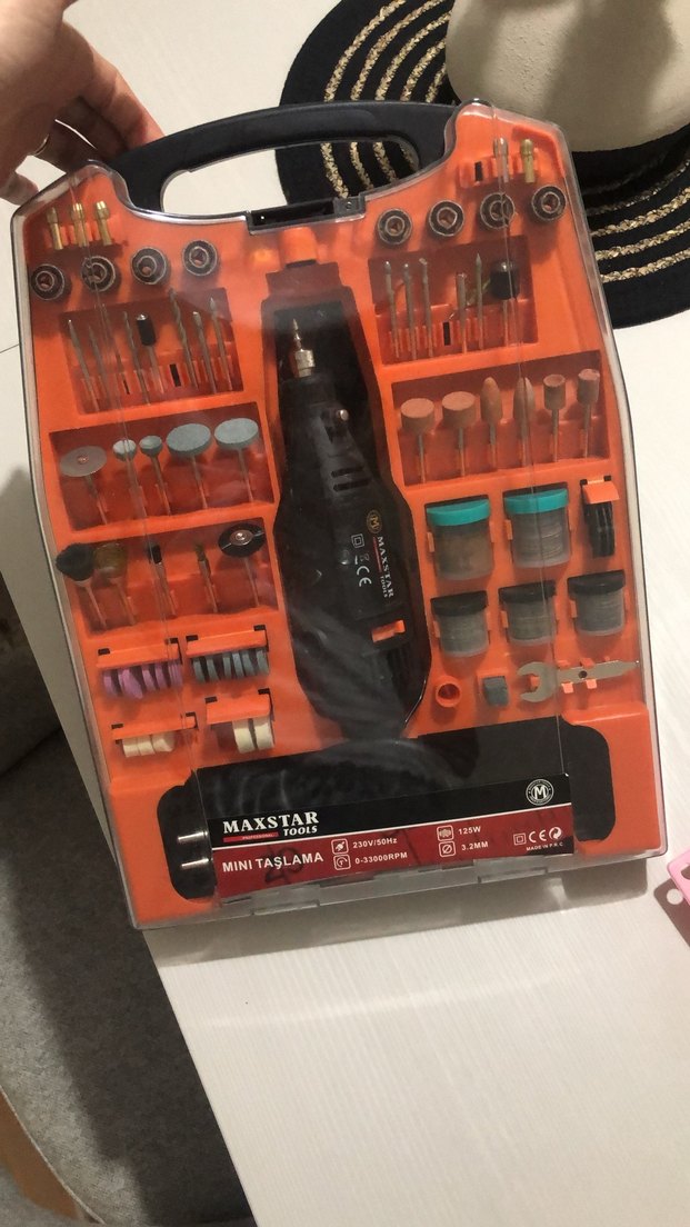MAXSTAR mini taşlama seti, detaylı manikür ve pedikür işlemleri için çeşitli aparatlarla birlikte kompakt bir kutuda sunulmaktadır. ️ bi kaç kez kullanıldı sıfır ayarında
