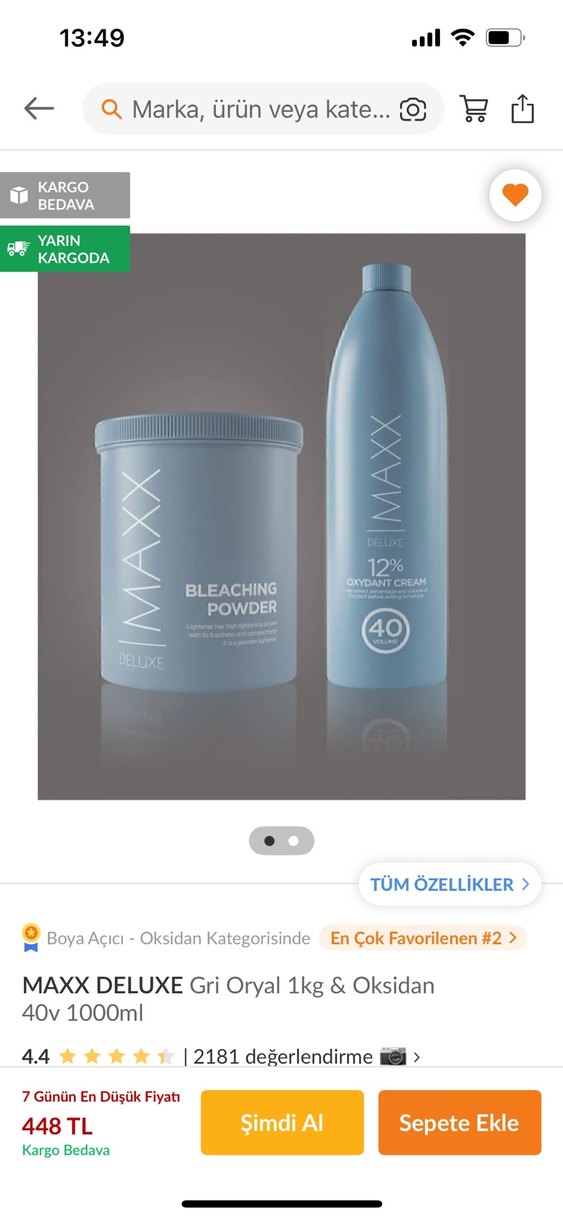 Okidandan 1 çay bardağı kadar kullanıldı. Toz olandan 1 yemek kaşığı kadar kullanıldı artık sarı olmadığım için satıyorum. MAXX DELUXE gri oryal 1kg ve %12 oksidan krem içerir. Profesyonel kalitede etkili saç açma sağlar.