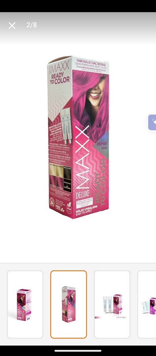 Maxx Deluxe saç boyası, pembe renk, kullanıma hazır formül ile kolay uygulama sağlar. Canlı pembe tonuyla dikkat çeker.adet fiyatidir