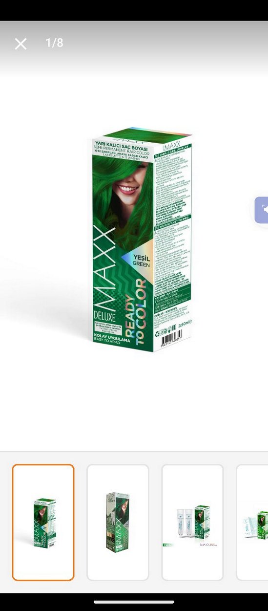 Maxx Deluxe yeşil kalıcı saç boyası, kolay uygulama ve kalıcı parlak renk sunar. Canlı yeşil tonuyla dikkat çeker.adet fiyatıdır