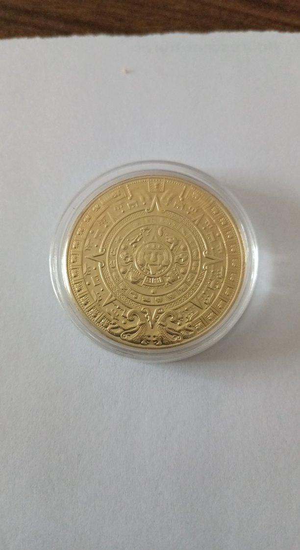 Parlak altın renkte,Maya takvimi madalyonu ✨,40 mm şeffaf kapsulünde,Lot:479