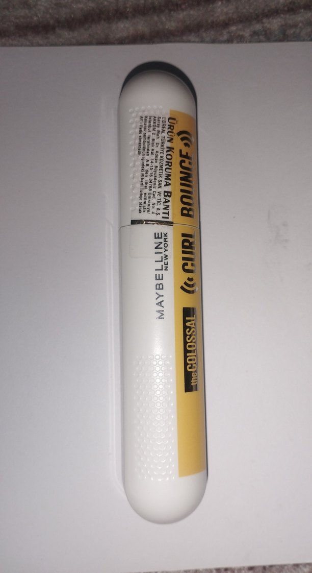 Maybelline beyaz koruyucu maskara, hafif renk ve pürüzsüz bitiş sunar. Ürün koruma bandı 'URUNKORUMABANTI' etiketlidir. ️